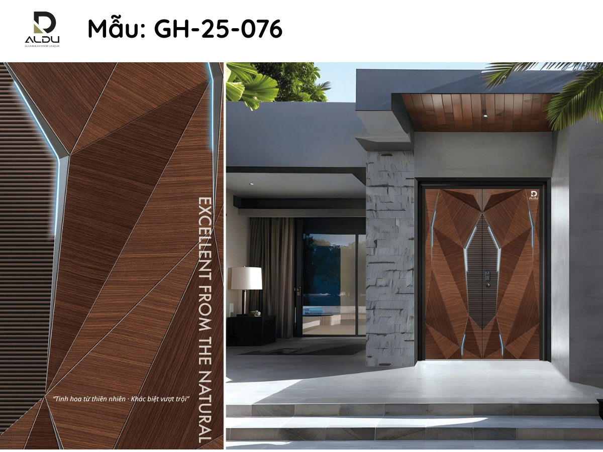 Khẳng định phong cách: Không chỉ là cánh cửa, GH-25-076 còn là điểm nhấn kiến trúc, thể hiện gu thẩm mỹ và cá tính riêng của gia chủ.
